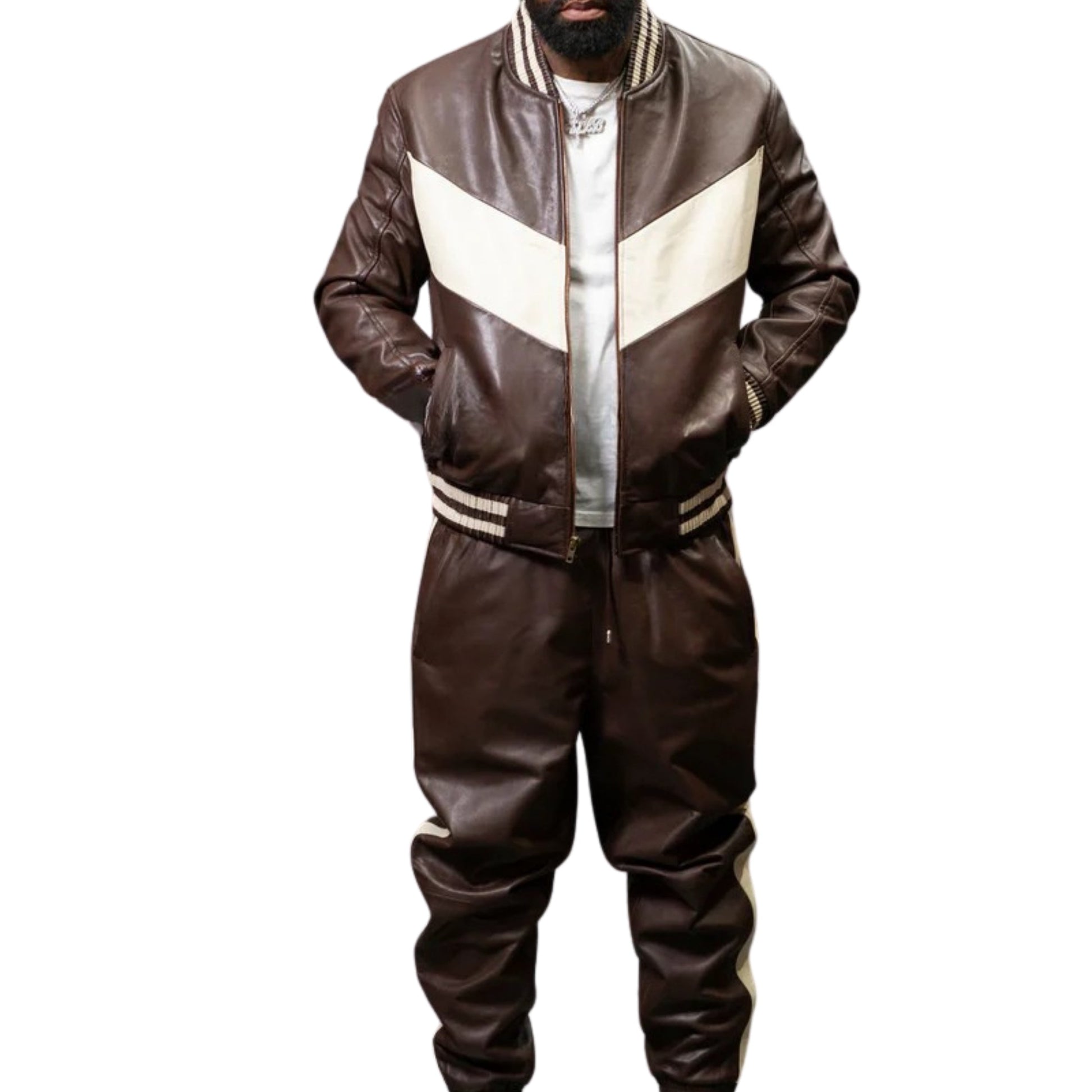 Brown & White Leather Tracksuit – Sleek, Stylish & Sporty